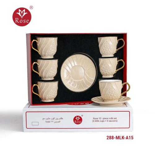 • طقم استكانة شاي 12 قطعة "6 استكانات + 6 صحون"