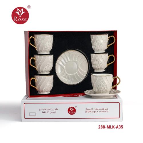 • طقم استكانة شاي 12 قطعة "6 استكانات + 6 صحون"